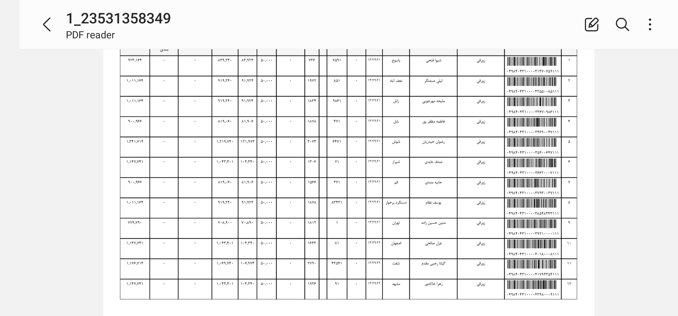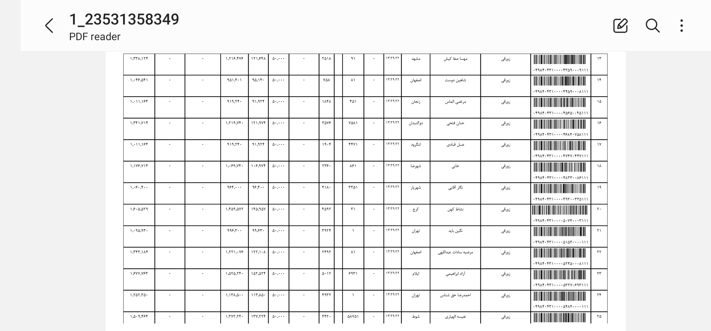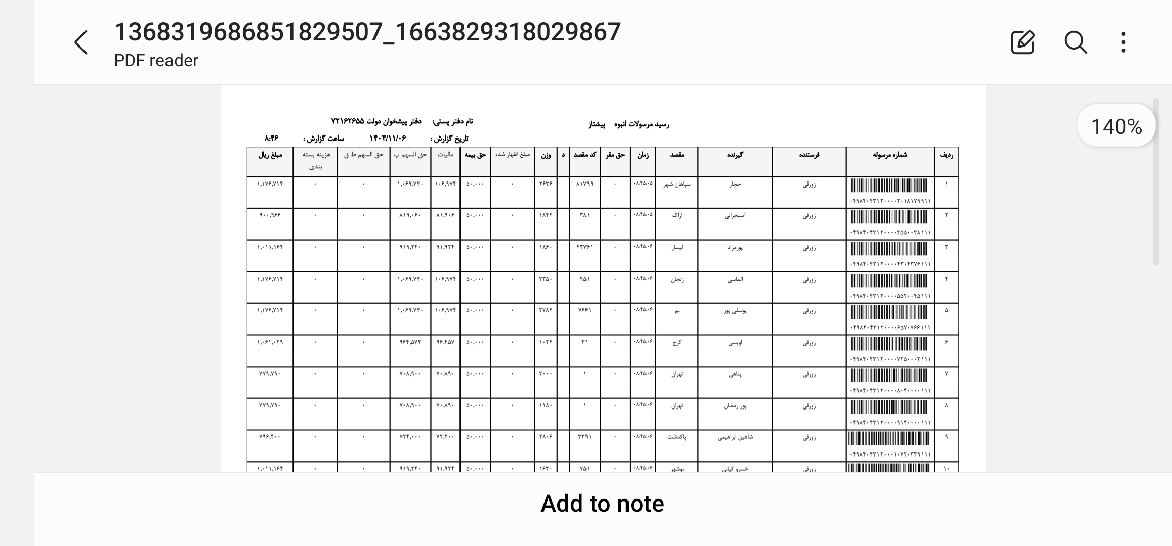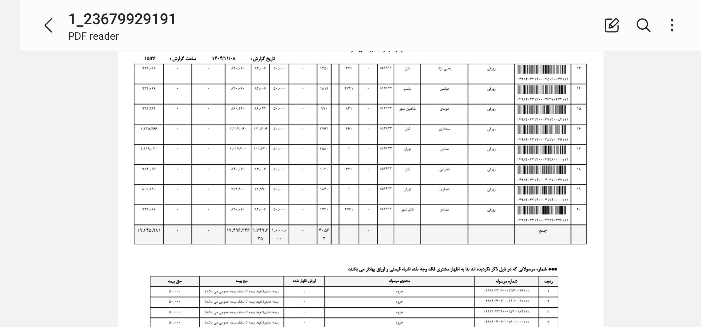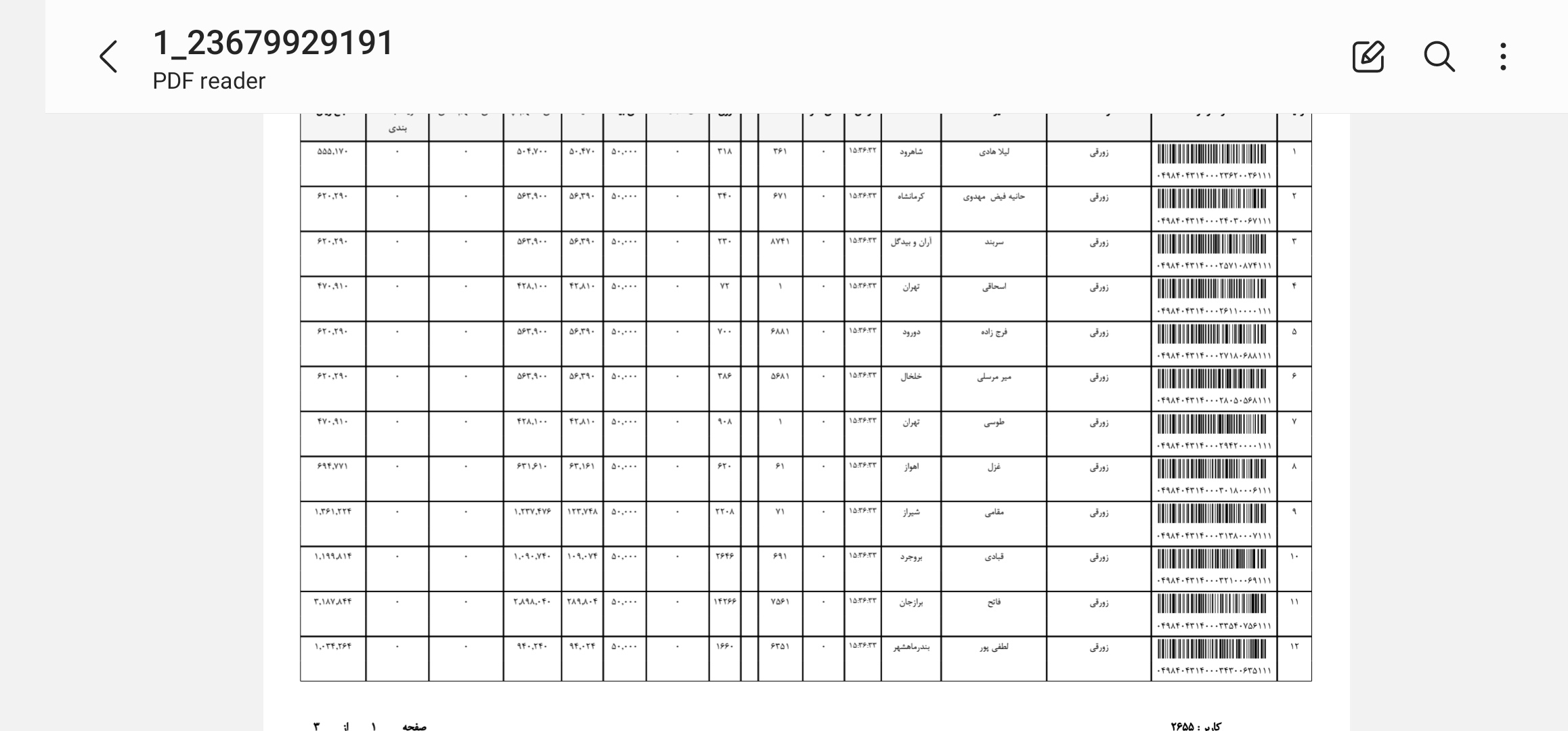 کد مرسوله های ارسالی دوشنبه ۲۲ دی